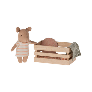 A cosy playset for imaginations to run wild. This little piglet cuddled up in its wooden box with cosy bedding, making a wonderful addition to any ...