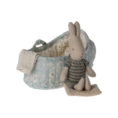 The well known Maileg micro bunny dressed up as a ballet dancer. It wears a suit and tulle skirt and has a small decoration around the pointing ears.