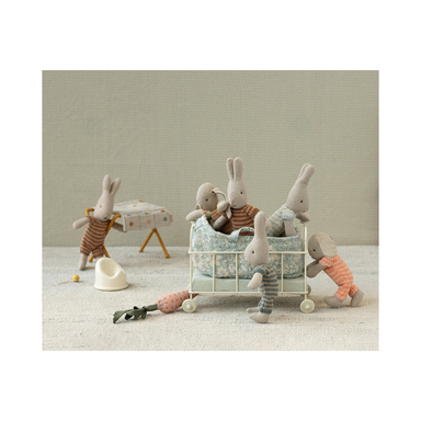 A beautiful Maileg pram with an exclusive vintage look. The metal part has embossed details on the sides, and the fabric cover fulfils the look. T...