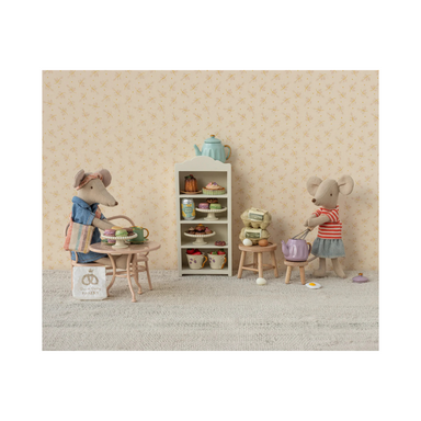 Café set furniture that fits the Mum and Dad sized mice. The set consist of a bench and a table, and is a perfect place for enjoying the afternoon ...