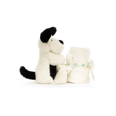 Introducing the Bashful Black & Cream Puppy Comforter, a portable patch of softness designed to comfort and soothe. This adorable puppy feature...