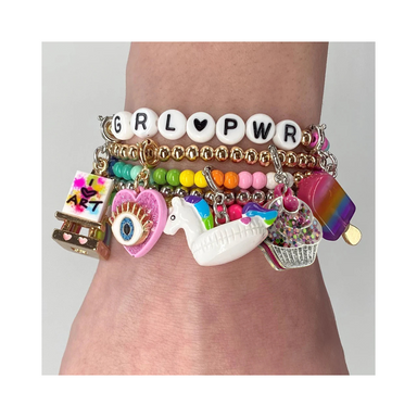 CHARM IT! girls everywhere agree, rainbow goes with everything! Add charms to this bracelet and customize her collection!