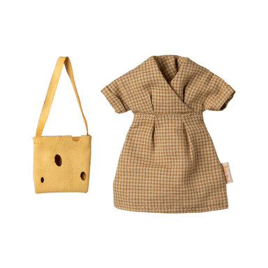 If you need a new set of clothes for your mouse this set will be a good choice. This set consists of a dress in small checks and a cheese hole bag.