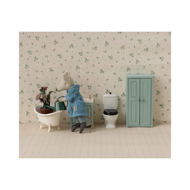 This tiny water closet is perfectly sized for the smallest mice and fits seamlessly into the bathroom of the SuitCasa Mouse House.