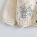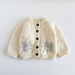 This cream-colored cardigan features hand-embroidered snowflakes with classic button down design and ribbed trim. It celebrates the magic of winter. Match with our Snowflake hat. - Designed in Salt Lake City - Crafted with care using 100% hand-knit Acrylic - Hand wash and lay flat to dry