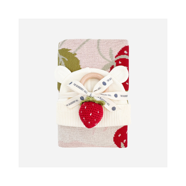 Bailey Bunny has been busy picking strawberries on the hill, and this charming Strawberry Blanket, Hat, and Rattle set captures all that sweetness....