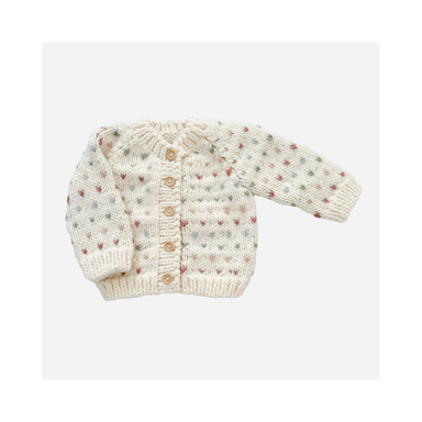 Wrap your little one in love with this sweet cream cardigan, hand-knit with tiny hearts in shades of Blush, Rose, Bowie Grey, and Mist. Soft, cozy,...