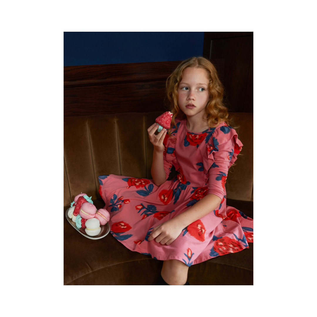 From our Turkish collection, this vintage-inspired floral print brings timeless elegance to our bestselling ballet dress. Designed for maximum twirl factor, the full skirt makes every spin extra fun, while ruffled shoulders add a sweet, festive touch. Crafted from soft cotton jersey, this cozy winter-ready dress is perfect for holiday celebrations and everyday charm.