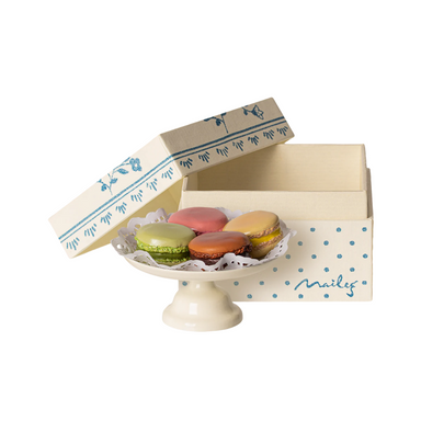 Treat your Maileg friends to a delightful café experience with these beautifully hand-painted macarons. From the delicate paper doily to the elegan...