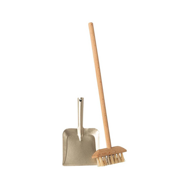 With this Miniature broom set you are ready to clean up. The dust pan comes in a beautiful warm silver color together with the wooden broom.