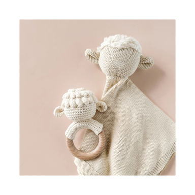 A sweet and classic baby teether designed to soothe and entertain little ones. This charming cream-colored lamb is hand-crocheted from soft cotton ...