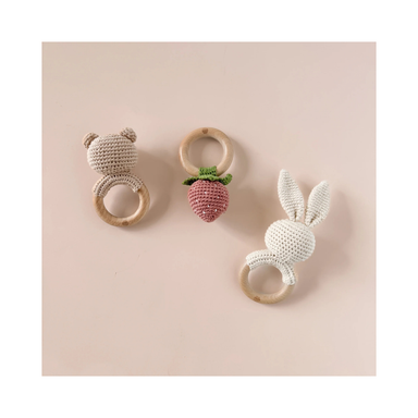 A sweet and classic baby teether designed to soothe and entertain little ones. This charming teether is hand-crocheted from soft cotton and feature...