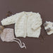 This adorable sweater features a single-button cardigan-style closure and an all-over popcorn dot knit. Pair with your favorite matching hat or bonnet for a complete look. Available in other colors. - Designed in Salt Lake City - Crafted with care using 100% Hand-knit Acrylic. - Hand wash and lay flat to dry.