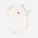 Complete your gift set this 100% Organic Cotton onesie, matching our blankets, teethers, accessories, and cards. This luxourious soft baby onesie features a lap shoulder design and three snaps for a easy change. Only one size 0-6m available.