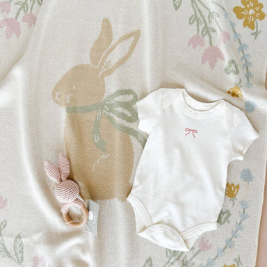 Set Pastel Floral Blanket Hat Rattle Bunny Strawberry Baby: Pink Strawberry