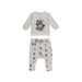 The super soft sweatshirt features a charming woodland moose print and vintage-copper-colored snaps at the back of the neck for easy dressing. Lead-free, nickel-free, and chrome-free snaps ensure it’s as safe as it is adorable. The matching joggers include a comfy elastic waistband with working drawstrings and two roomy front pockets — perfect for storing tiny treasures or keeping little hands warm.