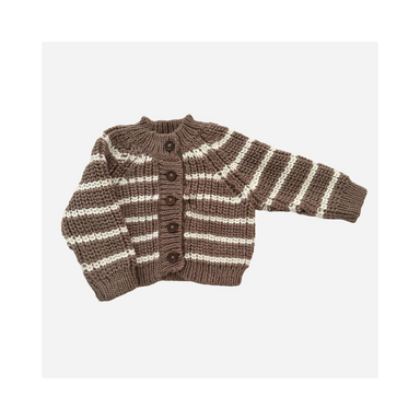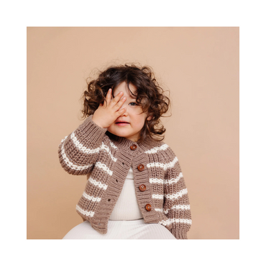 Soft, cozy, and timeless, this hand-knit baby cardigan is designed in a classic ribbed texture with delicate stripes in tan and cream. Perfect for ...