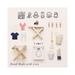 Crafted from FSC®-certified wood and finished with water-based, non-toxic paints, this eco-friendly set features a washing machine, folding clothes drying rack, iron and ironing board, miniature pegs, felt clothes, laundry basket, vacuum cleaner, mop, and bucket—all in natural, soft tones with exposed wood for a timeless, handcrafted feel. Scaled to fit Le Toy Van dollhouses, furniture sets, and dolls, it encourages children to care for their miniature world while developing fine motor skills, coordination, and creativity.