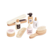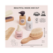 The set includes wooden hair straighteners, a comb, a brush, and a full range of pretend play haircare essentials such as mousse, heat protect spray, hair serum, hair mask, and hair spray—everything needed to create a complete salon experience. Crafted from FSC®-certified wood and finished with water-based, non-toxic paints, it’s both eco-conscious and safe for little hands.