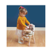 Perfectly sized for dolls and soft toys approximately 30–35 cm tall, this plastic-free high chair is made from durable, sustainably sourced rubberwood and finished with water-based, non-toxic paints. Delicate spindled legs, floral cut-out detailing, a tray table, and a footrest add a refined touch while supporting realistic, story-led play—perfect for feeding time and make-believe routines.