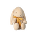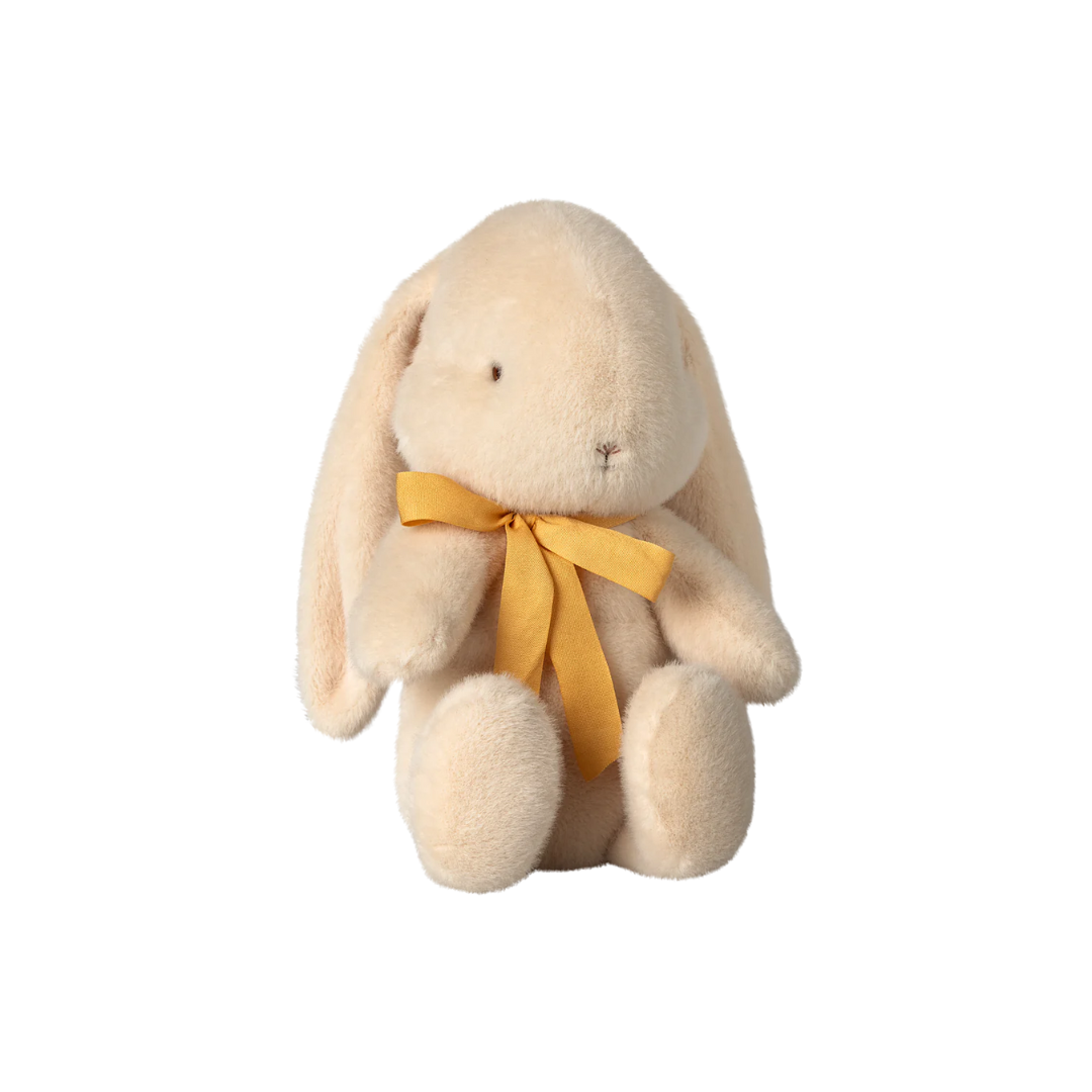 This bunny comes in very soft and unique plush fabric. It has a beautiful bow around the neck. It has a very sweet look and will soon be someone's very best friend.