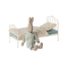 This charming miniature bed is designed to bring warmth, nostalgia, and beautiful detail to your Maileg dollhouse. Sized perfectly for Size 1 and 2 Bunnies and Rabbits, it features a vintage-inspired frame paired with a soft floral comforter and matching pillowcase. The cushy mattress adds an extra layer of comfort, giving your little friends a cozy place to unwind after a full day of play.