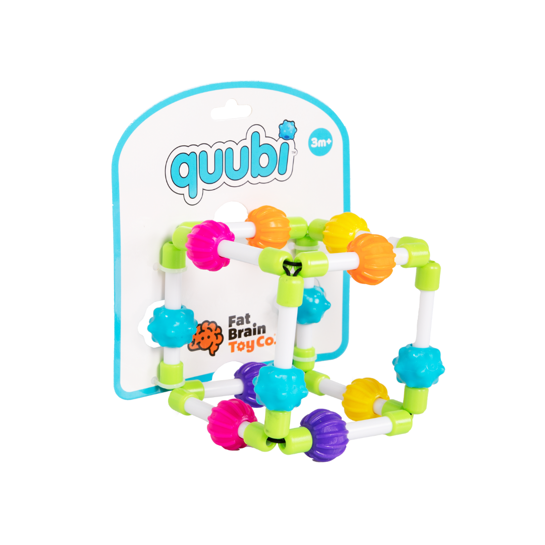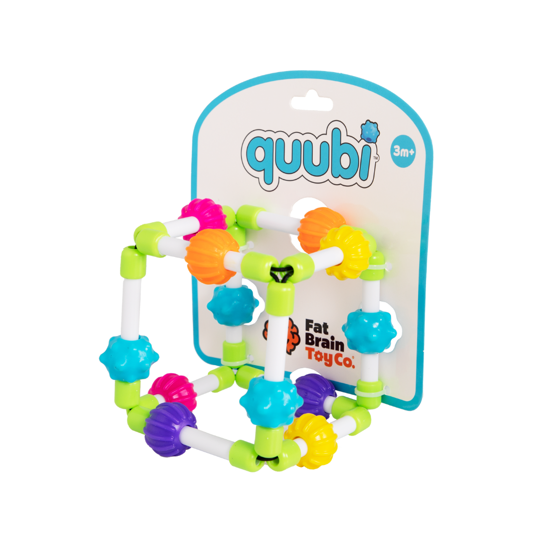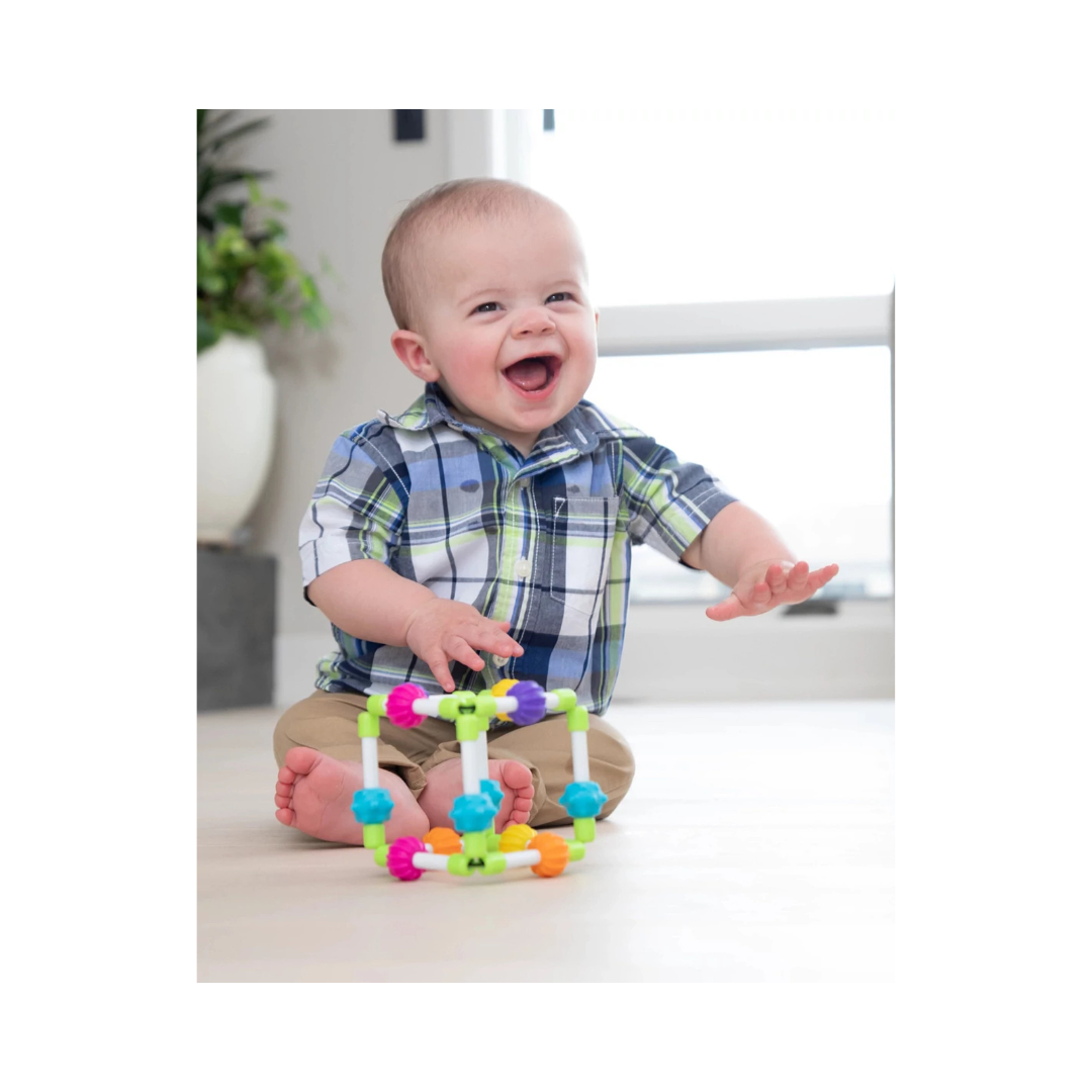 Each edge is connected by elastic bands to allow little hands to bend it and twist it this way and that. Meanwhile, the rubbery textured beads spin and slide for an extra boost of sensory fascination.