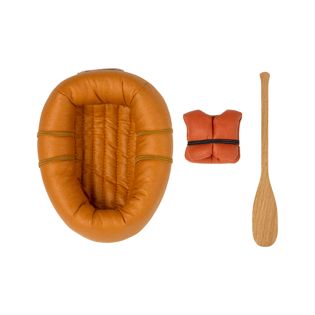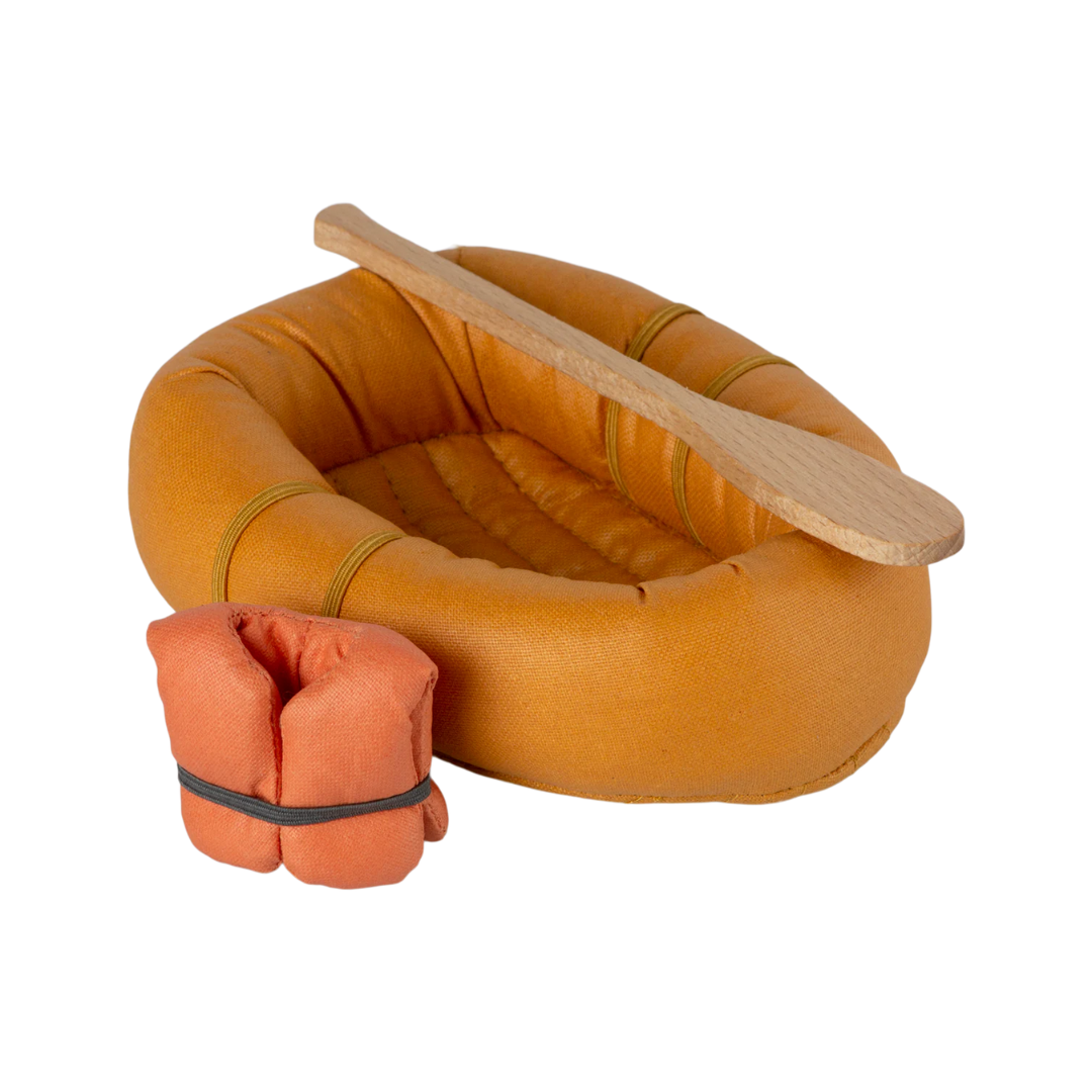 Set sail on a make-believe adventure with this charming fabric rubber boat! Complete with a life vest and paddle, it's perfect for your mice friends—just remember, it’s not waterproof, so you’ll have to imagine it floating!