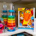 Drop the vibrant discs onto the threaded corkscrew pole and go ooooh as they spin fast and smooth to settle onto the reversible base.